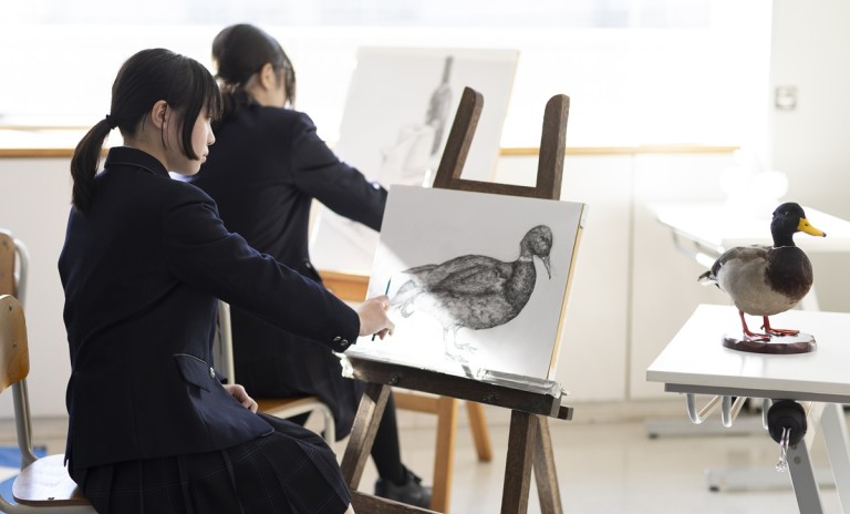 卒業生は例年90%以上が大学・専門学校へ進学。美術・芸術系大学進学のための総合進学対策講座も放課後に実施しており、美大受験のためのデッサンや油絵や面接対策などを毎週実施しております(受講料 無料)