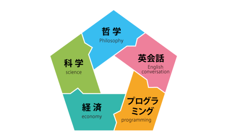 ワオ高生が必修で学ぶ教養探究(哲学・科学・経済)に加え、将来の必須言語である英会話とプログラミングが学習できます。