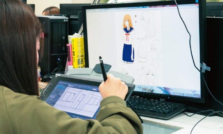 | ポップカルチャー総合学科 CGコース(週5日)・ポップカルチャー総合学科 イラストコース(週5日) | 【分野の特長】 ①CG・イラスト・アニメ分野の「絵を描く仕事」を学びプロの技術を習得する ②基礎のデッサン、アナログからデジタルまでしっかり学ぶので未経験者も安心 ③実際の制作現場で使われるツールを駆使してオリジナル作品を制作する 【PICKUPカリキュラム】 モチーフを中心とした素描を行い、物体を正確に描く観察力と描画力を身につける「ドローイング初級」やCGグラフィック制作現場で実際に使われているデジタルツールの基本操作を学ぶ「CGグラフィック演習基礎」など特別カリキュラムがあります。 ※1年次は両コースカリキュラムが同じですが、2年次よりカリキュラムがCGコースとイラストコースで分岐します。 卒業時に専修学校高等課程卒業資格(大学・専門学校進学や就職が可能。高等学校卒業資格と同等)を取得可能。 |