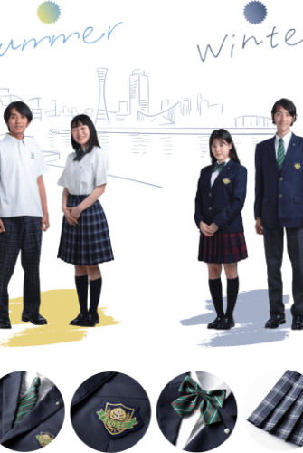 制服はありますが、自分でアレンジも可能です。エンブレムのみなど、部分購入も可能です。もちろん私服登校もOK。自分なりのスタイルで登校してください!